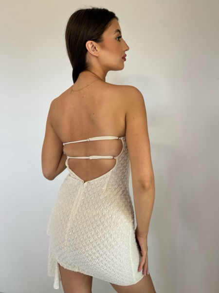 Sukienka Ariavela od Oh Polly w kolorze białym to propozycja dla kobiet, które szukają elegancji z odrobiną nowoczesności. Ma dopasowany krój, który pięknie akcentuje sylwetkę, oraz subtelną koronkową fakturę, która nadaje jej romantycznego i kobiecego charakteru. Góra sukienki z wycięciami na ramionach i dekoltem w kształcie litery V tworzy zmysłowy efekt, a jej krótki, lekko rozkloszowany dół dodaje lekkości i dynamiki. Wykonana z wysokiej jakości materiału, który jest zarówno wygodny, jak i efektowny. To idealny wybór na wesela, eleganckie przyjęcia czy romantyczne kolacje, gdzie biel podkreśla świeżość i klasę.