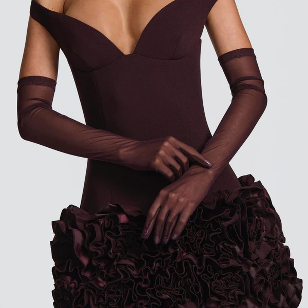 Eleganckie, przeźroczyste brązowe rękawiczki marki Babyboo Fashion to idealny dodatek do wieczorowych stylizacji oraz kompletów sukienek tej marki. Rękawiczki są oryginalnym elementem zestawu, podkreślają elegancję i dodają subtelnej zmysłowości każdej stylizacji.