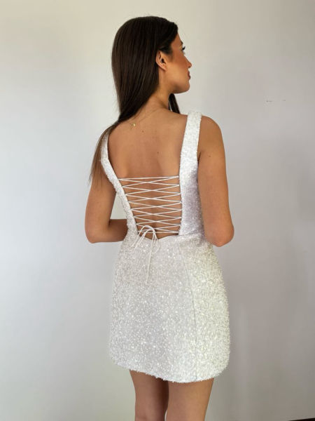 Zjawiskowa sylwetka w najlepszym wydaniu. Sukienka mini Dominique, ozdobiona najpiękniejszymi perełkami i koralikami, to idealny wybór na wydarzenia przedślubne i poślubne. Wykonana z lśniącej, recyklingowanej satyny oraz wysokiej jakości siateczki, ma dopracowany fason w kształcie litery A. Uroku dodaje jej kwadratowy dekolt, subtelnie zwężane ramiączka oraz wycięcie na plecach z regulowanym wiązaniem, które nadaje całości romantycznego charakteru i pozwala idealnie dopasować sukienkę do sylwetki.